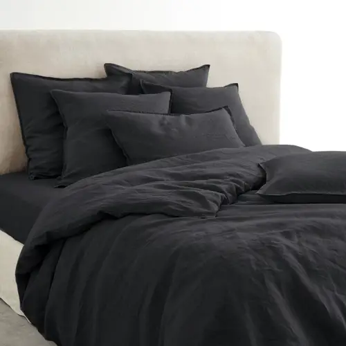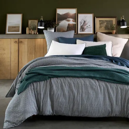 Si vous avez peur d'utiliser une couleur sombre en grande quantité ce n'est pas grave. Le style masculin dans la chambre à coucher se décline aussi sur une base de blanc que l'on va accessoiriser avec des couleurs plus foncées. On va utiliser la peinture pour mettre en évidence un détail, comme le radiateur ou encore les plinthes. Les textiles ayant une grande importance dans la chambre, ils seront aussi le moyen d'apporter une touche de couleur plus sombre: tapis, descente de lit, rideaux, stores, tête de lit et bien évidemment le linge de lit. Ce dernier n'est pas nécessairement uni. Il peut être un mélange de couleurs, de motifs et de textiles. Le but étant de créer un lit chaleureux qui invite à s'y blottir et à s'y reposer. Ces accessoires de couleurs plus foncées donneront de la profondeur à votre chambre à coucher même si elle est blanche.