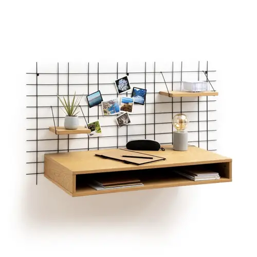 - Bureau mural plaqué chêne et cannage - La Redoute