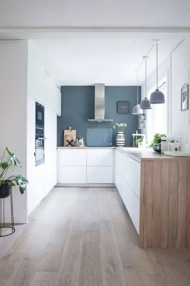 Et même si votre cuisine est à dominante claire, cela ne vous empêche pas d'ajouter une pointe de couleur plus vive pour un peu de peps avec une ou deux façades de meubles colorées, un carrelage coloré pour la crédence... Si dans votre cuisine vous avez un espace repas, il peut être source de couleur lui aussi. Le tout est de trouver l'équilibre entre couleur et luminosité.