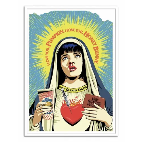 Il y a des films cultes, il y a aussi des musiques de films cultes. Et ça peut être une manière de décorer vos murs et votre intérieurs. Certains artistes détournent des scènes de films alors que d'autres vont minimaliser et garder les symboles les plus forts. J'ai été étonnée de voir que le film Pulp Fiction par exemple inspirait autant de monde.