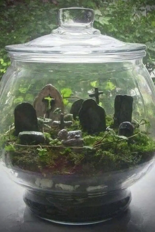 - Un cimetière miniature sous la forme d'un terrarium (une version moins encombrante de la maquette dans le film Beetlejuice)