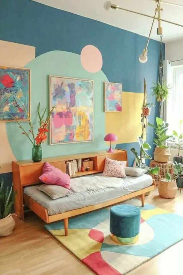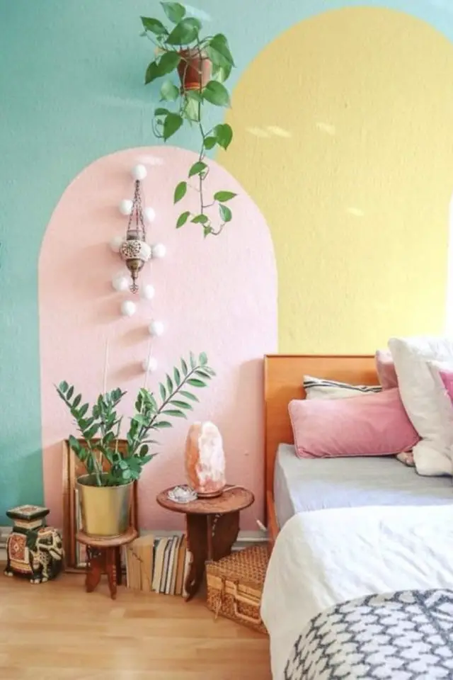 inspiration interieur colore jaune rose vert peinture revêtement mural revêtement sol carrelage papier peint sol souple