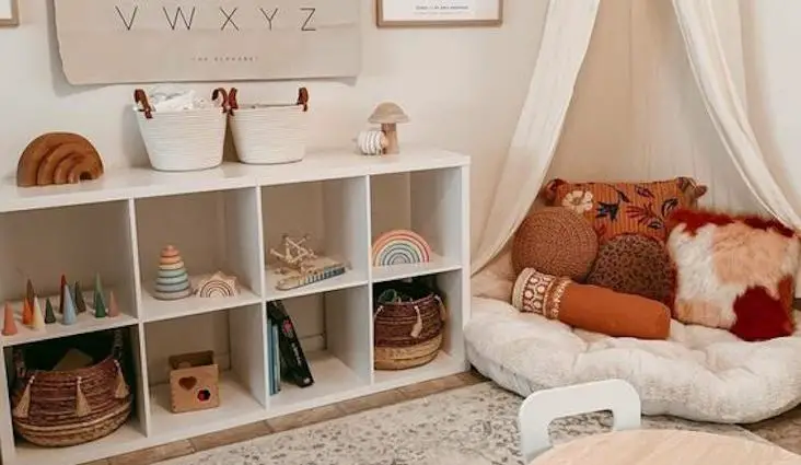 On commence la semaine avec un univers tout doux, celui de l'enfant. Tout doux mais pas que! Puisque j'ai eu envie de vous montrer quelques idées sympa pour une chambre Montessori (faut que je trouve le temps de mettre à jour les articles que j'ai déjà écrit à ce propos d'ailleurs). Si vous ne connaissez pas encore le principe Montessori, c'est un système d'éducation qui vise à donner de l'autonomie à votre enfant. Concrètement dans la chambre, on va trouver essentiellement des choses à la taille de l'enfant: un lit bas pour qu'il puisse y grimper sans aide, une penderie facile d'accès pour qu'il puisse choisir ses tenues, des paniers dans un meuble bas pour qu'il puisse ranger seul ses jouets sans avoir à vous demander de l'aide... Je trouve que c'est inspirant et en plus c'est très déco!