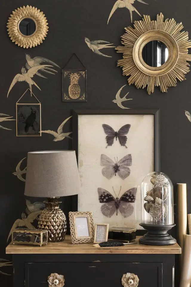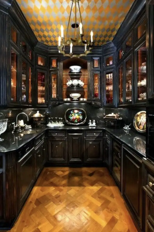 Autre élément déco qu'on connait déjà et qu'on retrouve dans le style goth ce sont les meubles anciens peint en noir. Vous savez les meubles avec des moulures, des poignées en laiton, etc. Il n'y a pas une époque particulière pour ce type de meubles, ce sont généralement des trouvailles faites en braderies pour un petit prix et on décide de leur donner une nouvelle vie. Le noir a souvent été considéré comme chic et élégant.