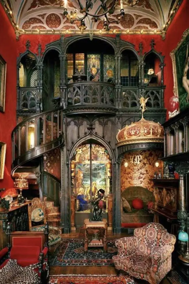 Deuxième point, on retrouve une idée d'ancien et de faste. A la fin de cet article, je vais revenir sur certains points culturels qui vous aideront à créer votre déco goth. L'un de ses points culture c'est l'Art Gothique, très chargé de détails notamment avec les sculptures monumentales. C'est un des exemples qui représente cette idée d'ancien et à mes yeux de bling bling. Moins ancien que l'époque médiévale, on peut aussi au style des maisons victoriennes avec des moulures au plafond et sur les murs, de grands escaliers en bois, etc. Pour le côté faste, on peut penser à l'utilisation de matériaux assez luxueux comme le marbre noir ou encore le laiton.