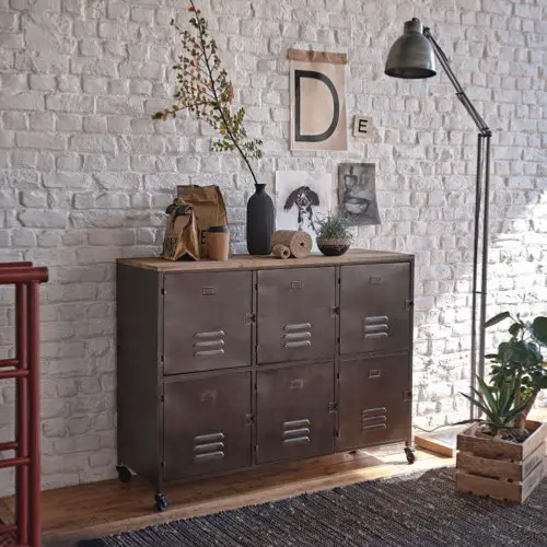 - Buffet industriel à roulettes 6 portes en métal - Maisons du Monde