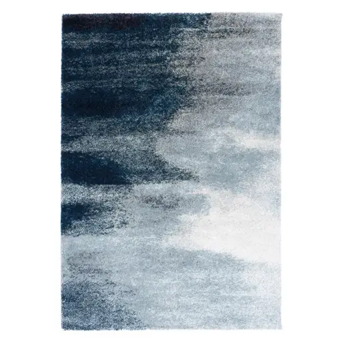 06 • Les décors remplis de couleurs ne sont pas nécessairement criards. Travailler les dégradés et les nuances permet de créer une continuité, un certain sens dans votre décoration de salon. En général, cette idée de dégradé est réalisée autour de couleurs neutres. Ici, il est question de couleurs plus franches. Le bleu essentiellement en pastel sur le mur. Plus électrique sur le canapé et le pouf. Et pour que ce ne soit pas trop fade, une touche de rose pour créer un doux contraste et une touche de chaleur.