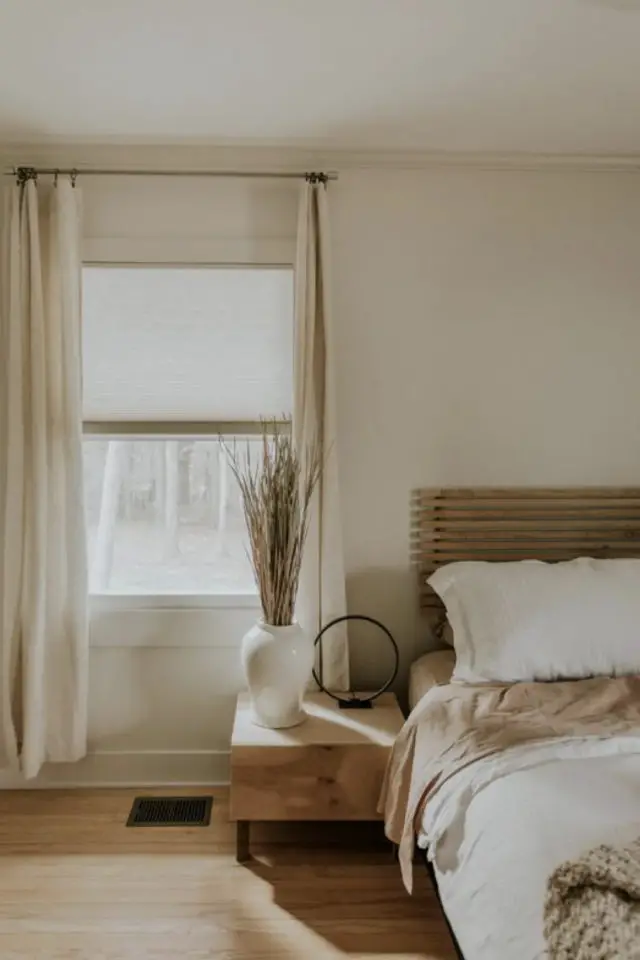 On repart sur un style dont je parle régulièrement: le style minimal. Comme je viens de passez 2 semaines dans ma chambre, j'ai eu le temps de me dire que j'avais besoin d'un espace épuré... Cela ne fait pas partie de mon quotidien. Ma chambre étant le seul espace "à moi", le seul espace personnel que nous avons avec Flo. (C'est le principe de vivre en guesthouse...) Notre chambre est donc un espace à part. On y dort, mais il y a aussi nos valises et sacs de voyage, mon bureau quand je ne bosse pas, un garde manger, nos affaires de toilettes, etc. Vous l'aurez compris, par nos choix de vie, nous n'avons pas le luxe d'avoir un espace sommeil épuré. Pourtant, j'aime quand il n'y a que le nécessaire. Ni trop peu, ni trop trop. J'y vois une certaine forme de sérénité. J'aime les couleurs neutres en camaïeux, le mobilier en bois simple, l'absence parfois de table de chevet, le linge de lit doux et simple. J'aime aussi la lumière douce qui se dégage de ce type de décors. Si vous aussi vous aimez ces ambiances slow et minimales, découvrez ici 20 chambres minimalistes et modernes.