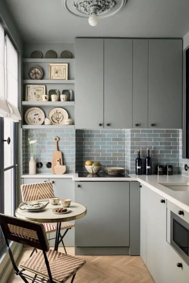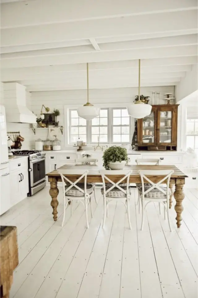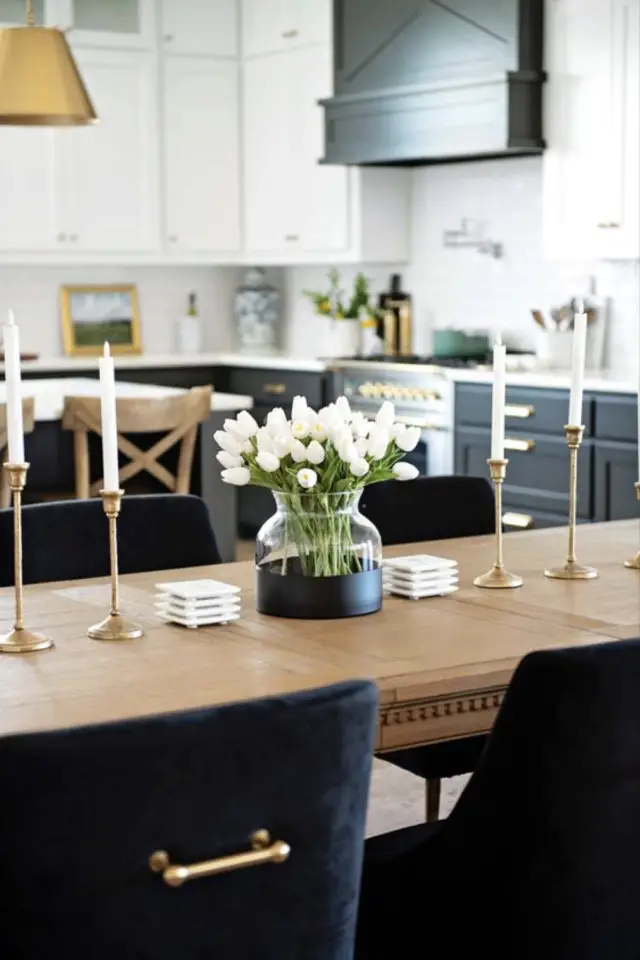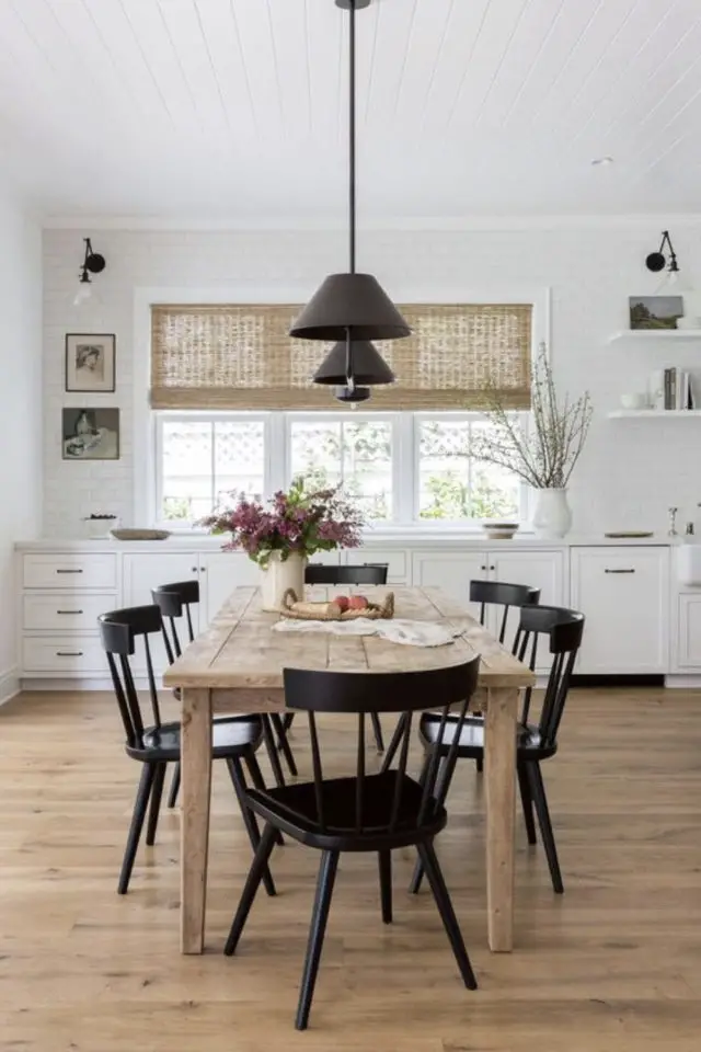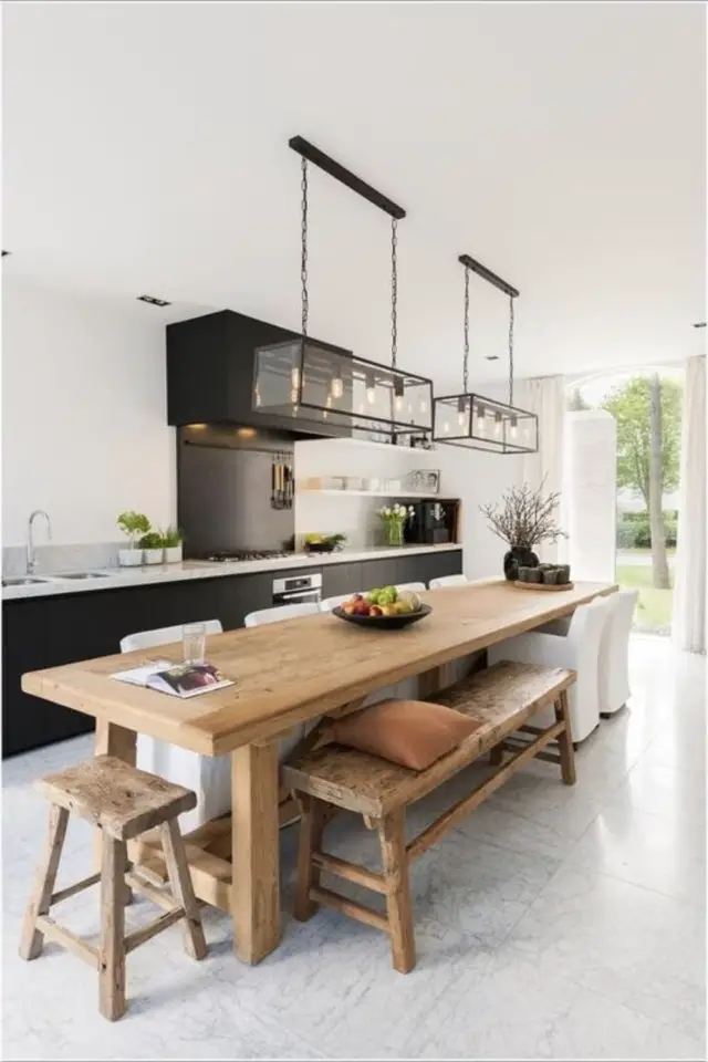 Dernier point de cette semaine, une table dans la cuisine. Même dans les petites cuisines, il est possible de mettre une table pour un repas rapide. cette fois, je n'avais pas envie de me concentrer sur un style particulier ou sur une taille de cuisine particulière. Je crois que j'ai eu un petit coup de nostalgie quand je faisais mes devoirs dans la cuisine ou quand on partageait nos repas en famille chaque jour dans cette pièce quand j'étais enfant. Dans la maison familiale, on avait une salle à manger qui ne servait que pour les grandes occasions. Au quotidien, on faisait tout dans la cuisine (ce qui me semble assez absurde vu que ce n'était pas du tout une grande pièce...) Passons! Je voulais juste vous montrer quelques possibilités pour intégrer une table dans votre pièce.