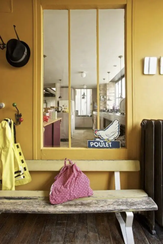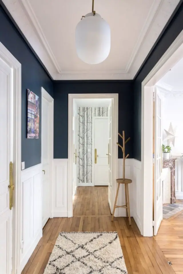 - Mettre en valeur l'espace entrée (dans le cas où elle est ouverte sur une autre pièce) avec du lambris coloré