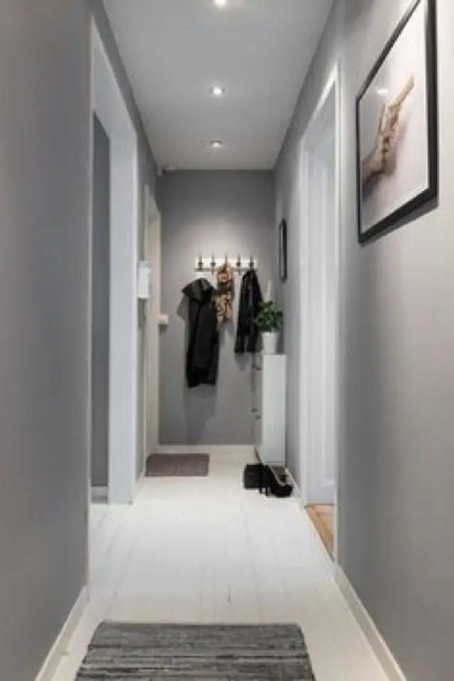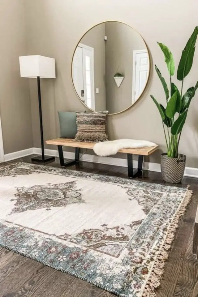 Je peux très bien comprendre que le blanc ne soit pas votre tasse de thé pour moult raisons. Heureusement, ce n'est pas la seule couleur qui colle pour une petite entrée! On peut aussi s'orienter vers des couleurs neutres et claires comme le gris pâle et le beige. Ces nuances de couleurs neutres paraissent parfois plus chaleureuses que le blanc. Elles sont douces et cette idée est intéressante quand on décore la première pièce dans laquelle on entre chez soi. La douceur est un sentiment agréable après une longue et froide journée de travail. Pour casser le côté trop uniforme qui ressort parfois avec ce type de couleurs, n'hésitez pas à jouer avec les accessoires. Ce n'est pas parce que vous avez peu de place que vous devez faire l'impasse sur tout! Un banc en bois, un miroir rond, des cadres photos, une console, un tapis, une plante verte... Il existe de nombreuses façons de dynamiser une pièce qui semble fade.