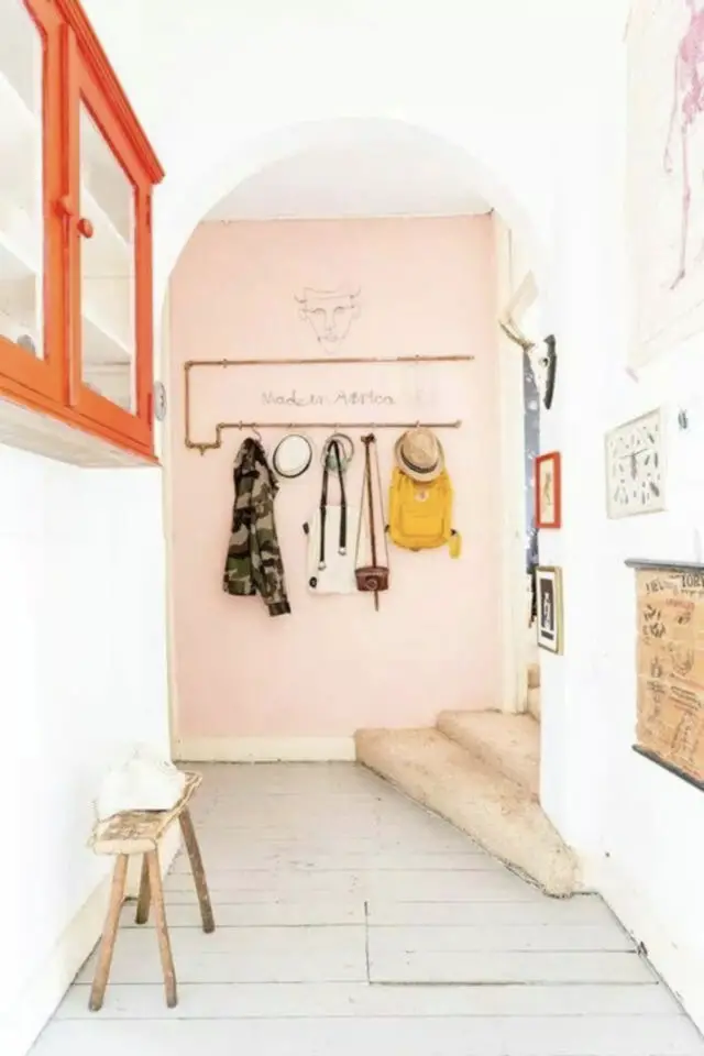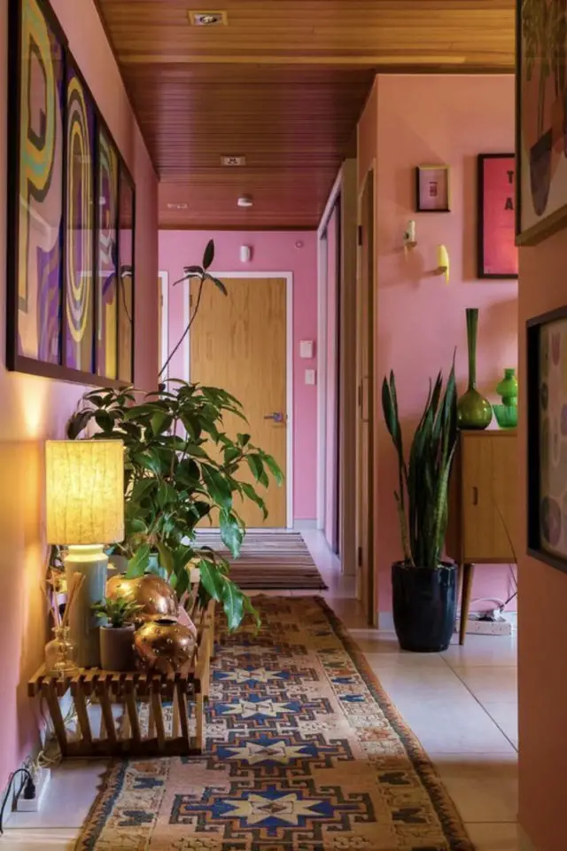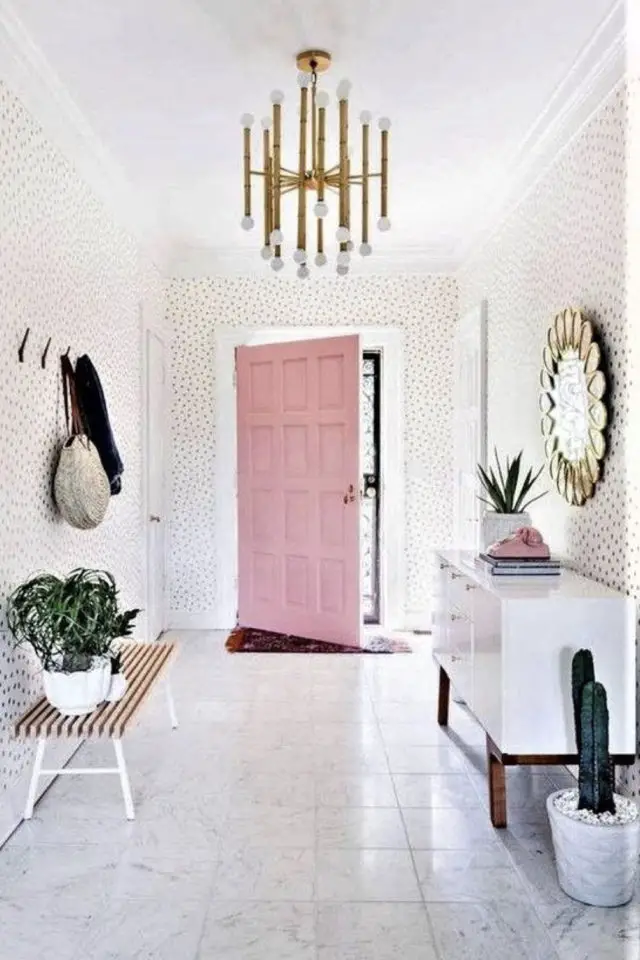 Le rose à mes yeux est synonyme d'amour et de tendresse, avant même d'être synonyme de féminité. C'est une couleur que j'aime plutôt pas mal que ce soit en déco comme en habillement. Je trouve aussi que c'est une couleur qui apporte de la gaité dans un intérieur en plus de son côté chaleureux. Bref. Le rose est top. Et pourquoi ne pas l'utiliser dans l'entrée? Peinture murale ou sur la porte, papiers peints sont vos alliés!