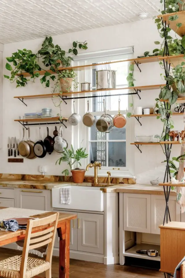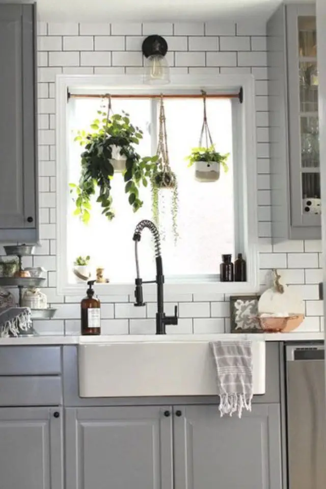 La cuisine est une pièce à part quand il est question de la décorer. Cela s'explique essentiellement par deux raisons. La première c'est le nombre de meubles présents qui parfois créent un sentiment d'encombrement dans la pièce; La seconde c'est l'utilisation qu'on en a. La cuisine est bien plus salissante qu'une pièce de vie par exemple. Et donc la décorer est une démarche un peu différente. Souvent au dessus de l'évier, on trouve une fenêtre. C'est l'occasion d'y mettre en peu de décoration. J'aime beaucoup les plantes suspendues. Ce n'est néanmoins pas la seule solution. On peut y ranger des pots à épices sur une étagère, suspendre des casseroles, mettre un joli store...