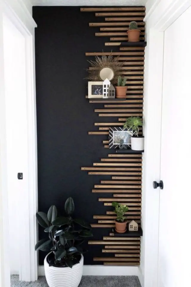Ces derniers mois, j'ai beaucoup développé l'idée de décoration murale sur le blog. C'est une thématique qui me plait beaucoup parce qu'elle est infinie ou presque! Elle revêt différentes formes, du plus classiques au très moderne. Elle s'invite dans toutes les pièces de la maison, sans exception. Et en règle générale, on peut se charger soi même de la mise en oeuvre. Pour commencer la semaine, j'ai voulu regarder les murs qui sortent de l'ordinaire, non pas par leur décoration, mais par leur taille ou leur forme. Et de là, je suis venue à me demander comment décorer un pan de mur qu'il soit petit, étroit, en pente... Et il y a beaucoup de choix. C'est d'ailleurs une idée qu'il faut que je garde en tête pour la développer plus tard. En attendant, je vous propose quelques idées: des cadres (un classique dont je ne me lasse pas), des tasseaux de bois (un décor très contemporain), une guitare et des références à la musique (vous savez comme ce thème m'est cher!), et, évidemment des décors muraux peints.