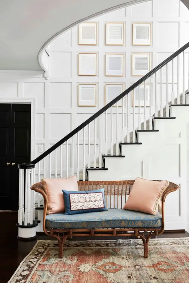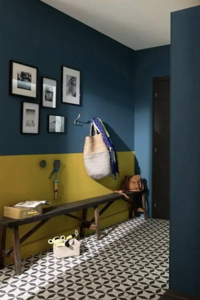 Enfin dernier point que j'affectionne beaucoup: créer un soubassement dans l'entrée, notamment un soubassement en lambris peint. Je trouve que c'est un choix chaleureux, convivial. Comme un message de bienvenue. Le lambris peint est souvent associé aux ambiances farm-house ou au style classique chic. Cela offre beaucoup de personnalité à la pièce, même si elle est toute petite!