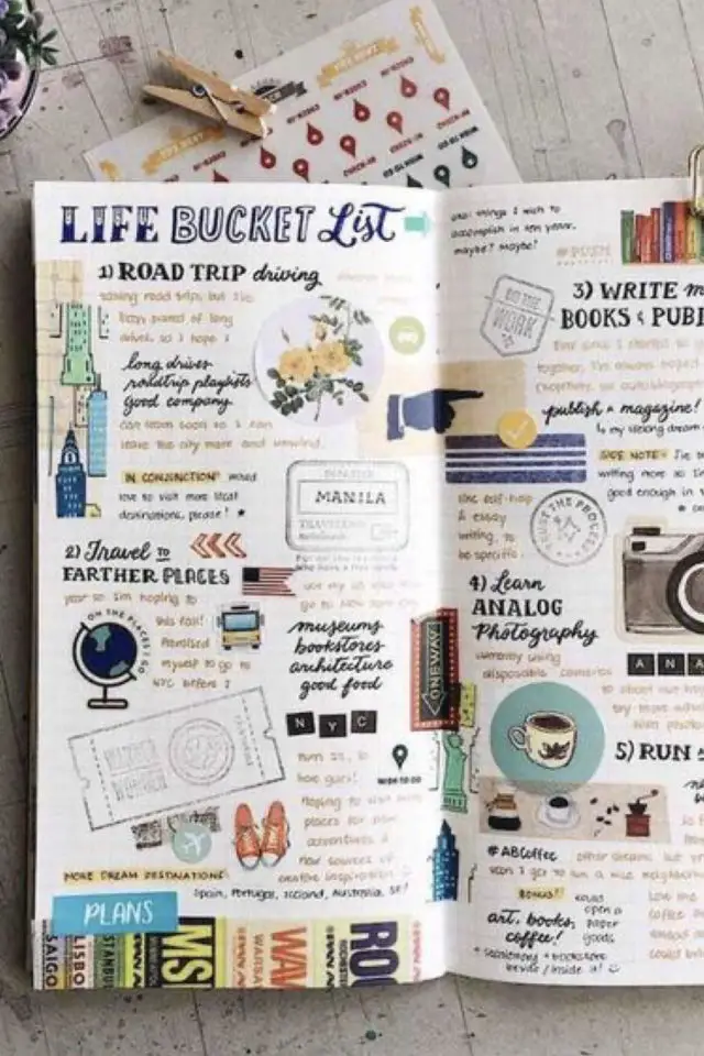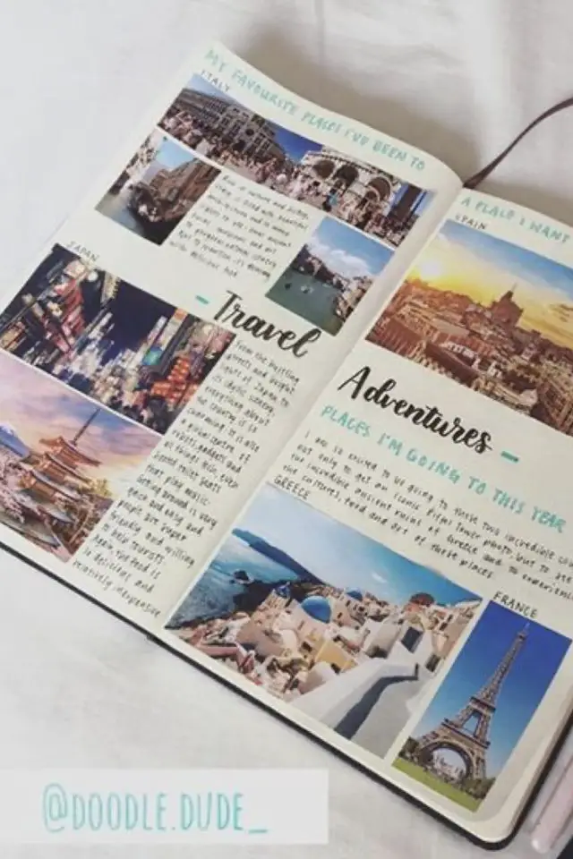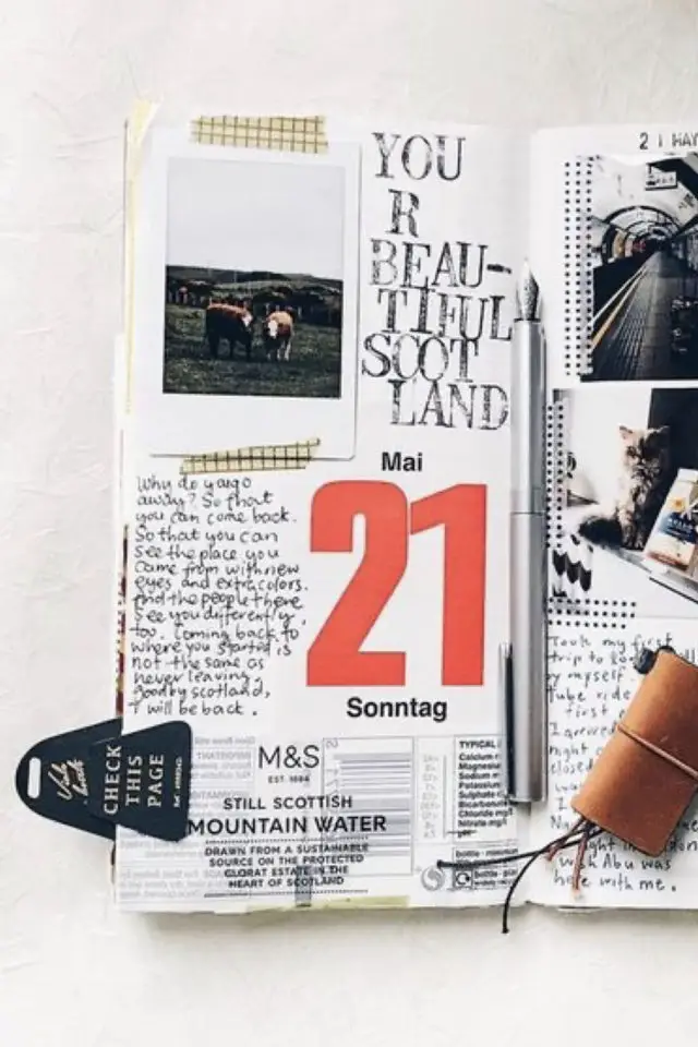 Le mois passé, je vous avais proposé de découvrir les première images de mon carnet de voyage. Plus de 5 ans après notre changement de vie, je me suis enfin mise à en tenir un pour ne pas oublier les détails de mon quotidien. En ce moment, j'ai quelques soucis techniques (mon ordi est mort je crois...), je ne peux pas vous montrer la continuation de mon journal de voyage. Il faudra encore patienter un moment. Pour cela, je vous propose une sélection d'inspirations pour décorer votre propre journal. Comme la saison des vacances arrive à grands pas, vous aurez peut-être de nouveaux souvenirs à garder précieusement mais aussi plus de temps pour décorer votre carnet. J'espère que ces 30 idées vous inspireront!