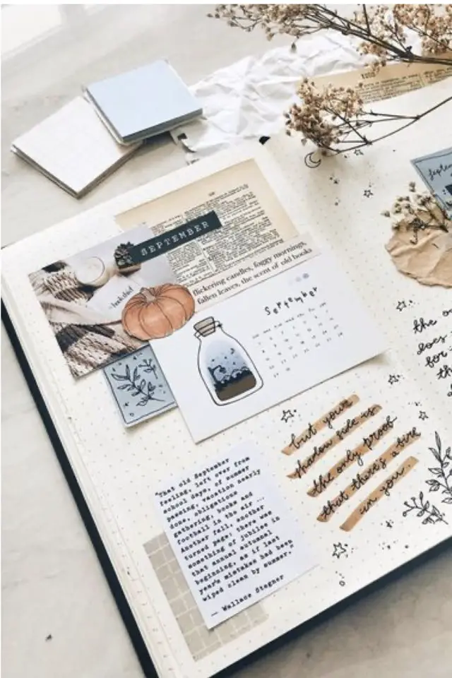 01 • Simplicité: une jolie citation, des morceaux de feuilles collées, un cadre noir pour mettre en avant les quelques mots.
