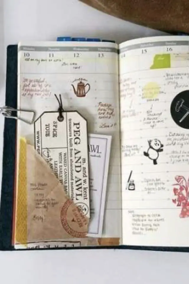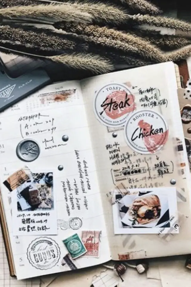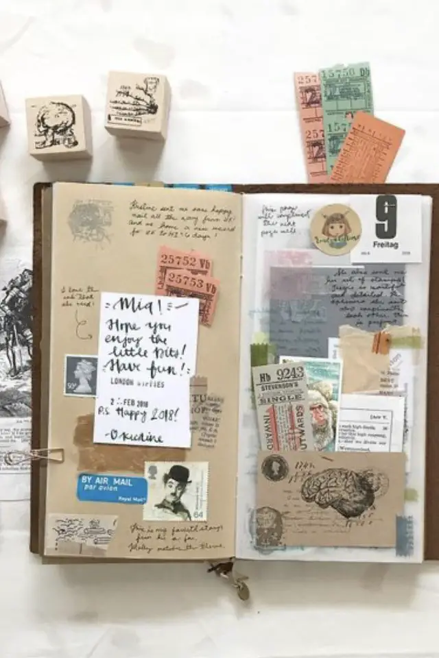 17 • Stickers, photos comme un Polaroid, timbres, tampons de visas... Il y a ici une esthétique très japonaise. Minimale, élégante, simple. J'aime beaucoup.