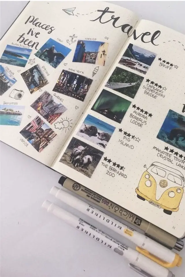 21 • Un tas de petites photos imprimées - pourquoi pas sur du papier autocollant - avec des petites étoiles pour noter les endroits que vous avez visités, si vous les avez aimés ou pas.