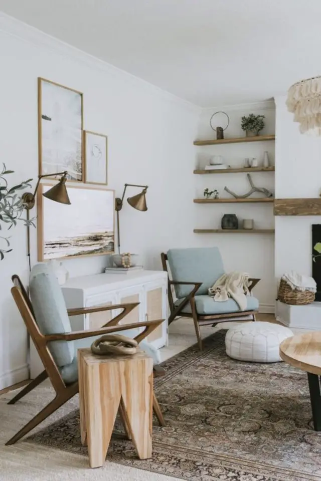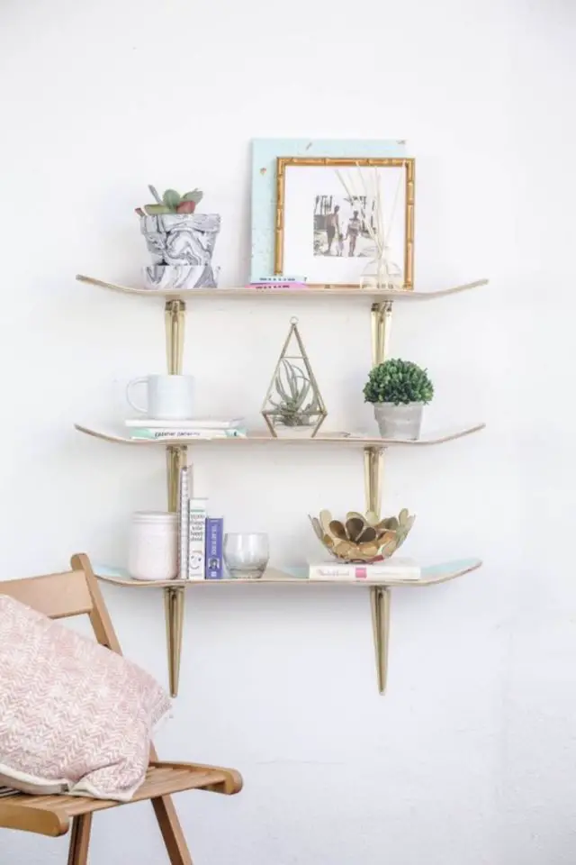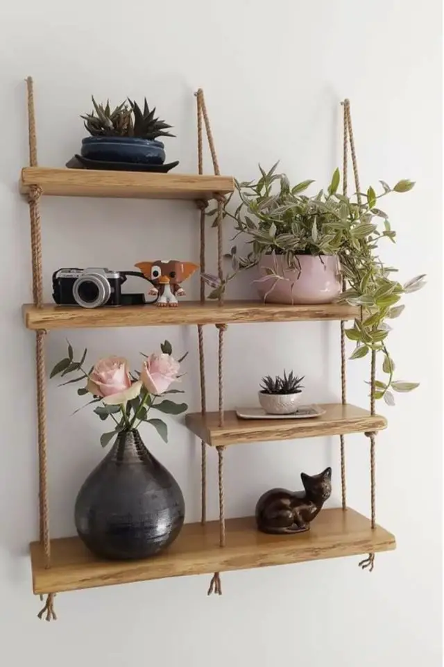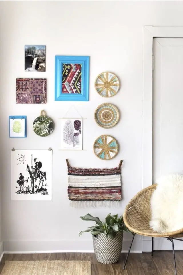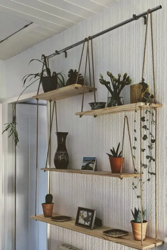 Vous verrez à la fin de cet article qu'il y a de nombreuses possibilités quant à la création de déco murale faite de récup. Recyclez de vieilles assiettes, des chapeaux, des paniers pour les accrocher au mur. Pour un salon plus nature, profitez d'une promenade en forêt pour ramasser des branches qui serviront à décorer ou pendant les vacances d'été à la plage, ramassez des coquillages et des galets pour un salon récup bord de mer. Enfin, si vous êtes de nature bricoleuse, vous avez peut-être des planches qui trainent. C'est l'occasion de vous en servir pour créer de nouvelles étagères murales. Je n'ai pas de photo, mais la dernière fois que je suis rentrée en France, j'ai créé en une après-midi, une étagère suspendue avec du bois d'une étagère qui allait partir à la poubelle et de la corde que j'ai tressée façon macramé. Tout était dans le garage de la mère de mon frère. Ca m'a coûté zéro euro, juste un peu de temps. Et elle était très contente de sa nouvelle étagère!