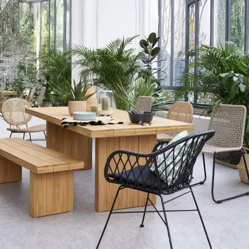 - la taille de la table (et si vous ne recevez qu'occasionnellement, vous pouvez choisir une table extérieure) avec allonges;
