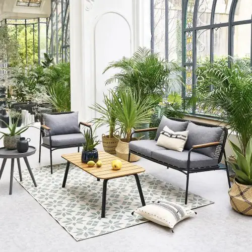 - les matériaux qui composent votre salon de jardin: bois, métal, résine...