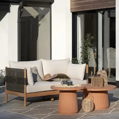 Si vous suivez le blog, vous avez remarqué que je vous parlais bien plus des balcons cette année. Et dans cet article, je n'y coupe pas. Je vous propose pour terminer cet article une sélection de meubles avec une taille parfaite pour un petit balcon. On y trouve évidemment des petites tables de 2 personnes. Il y a aussi des meubles extérieurs qui n'encombrent pas comme une banquette, un bain de soleil, un fauteuil suspendu ou encore un bout de canapé qui peut faire office de table basse. Je crois qu'avec ces dernières années, on a toutes et tous compris que prendre soin de notre logement (intérieur comme extérieur) était essentiel. C'est donc assez logique pour moi de faire en sorte de rendre le balcon plus confortable.