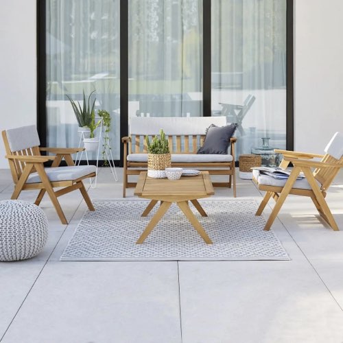 Canapé de jardin, fauteuil extérieur, bain de soleil, chilienne, balançoire et balancelle, daybed ou encore hamac... Les possibilités sont nombreuses quand il est question de créer un espace détente sur la terrasse ou dans le jardin. Les salons de jardins bas sont parfaits pour prendre le café à l'ombre d'une pergola ou boire l'apéro en week-end avec les amis pendant que les enfants jouent un peu plus loin. Même si vous n'avez qu'un petit espace extérieur (une petite terrasse ou un petit balcon), le confort peut se trouver grâce à un fauteuil bas accompagné d'un repose pied et / ou une table basse. Cela vous permettra de lire ou juste profiter de la vue et du beau temps.