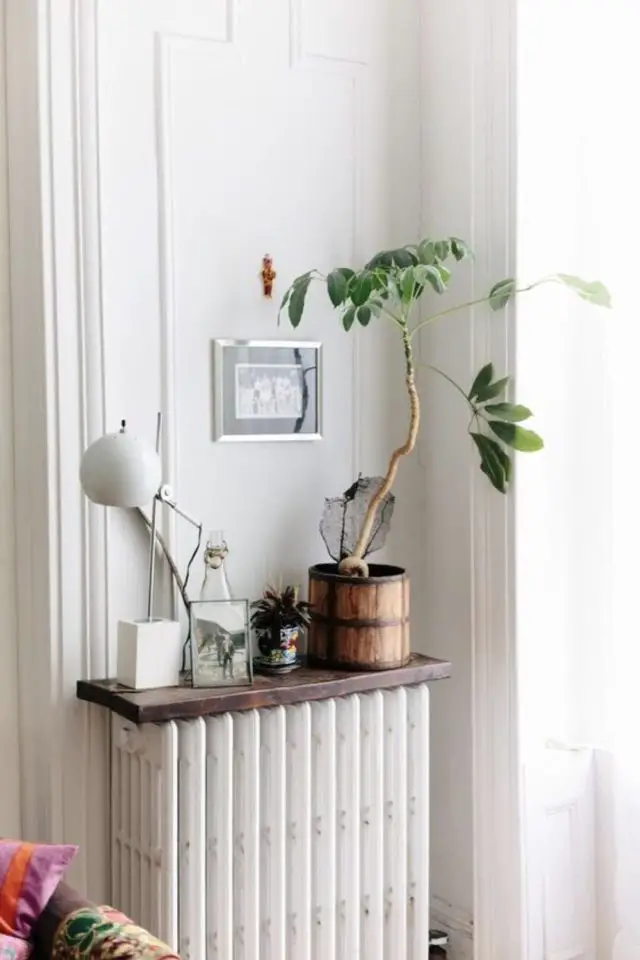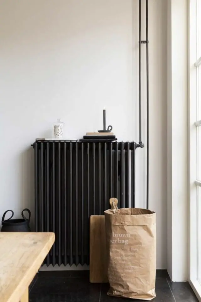 Je l'évoquais déjà la semaine passée, l'automne est là. Même si je suis à plusieurs milliers de kilomètres de la France, je sais aussi qu'en ce moment c'est un sujet tristement tendance que de se chauffer cet hiver. (Putain, on vit quand même dans un monde sacrément fucké quand même!) Je me tâte d'ailleurs à écrire un article sur la manière de faire des économies d'énergie. J'ai pu voir une paire d'aberrations à ce propos sur les réseaux sociaux. Mais dans mon esprit, c'est un sujet tout aussi politique que pratique. Je ne vais donc pas commencer la semaine en m'énervent toute seule à ce propos. Au lieu de ça, je vous propose quelques idées pour rendre plus élégant votre radiateur, notamment les systèmes au gaz. On peut les peindre, on peut créer un coffrage pour le dissimuler, on peut aussi tout simplement poser une étagère au dessus (l'idéal est quand même de laisser un espace entre l'étagère et le radiateur pour que l'air chaud puisse circuler!). Le radiateur peut être un élément un peu moche dans la déco d'une pièce. Vous avez deux choix possibles: D'une part, le planquer pour qu'il se fasse ou oublier ou d'un autre côté il est possible de le mettre en valeur pour le rendre bien plus déco. Perso, j'aime beaucoup la deuxième possibilité!