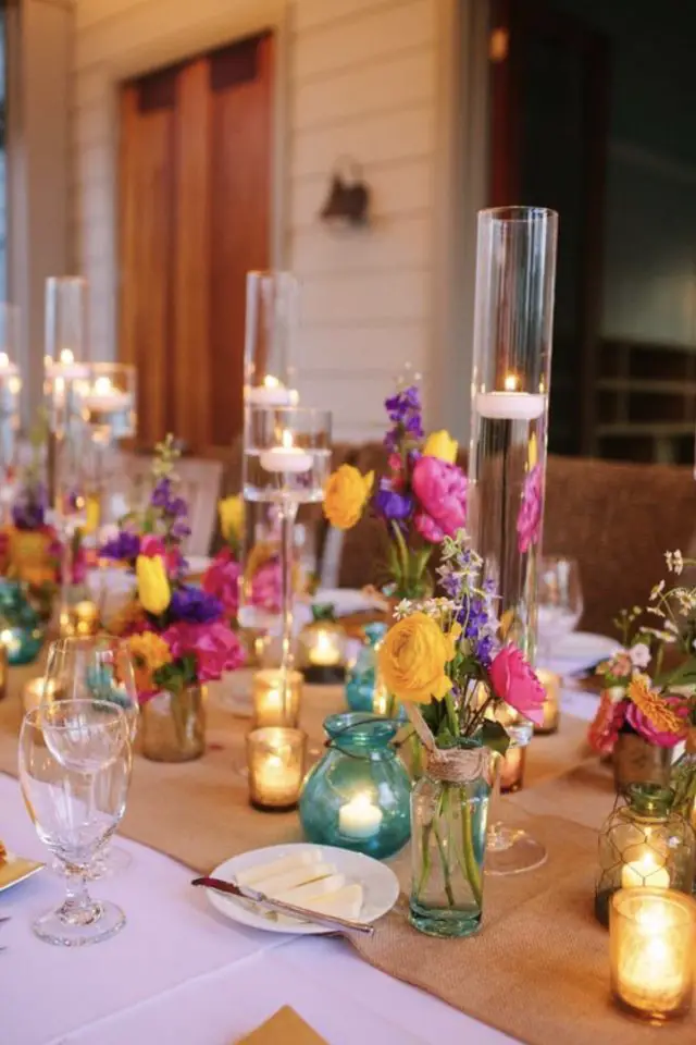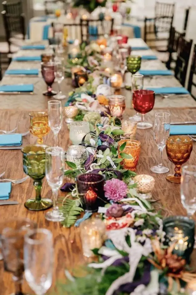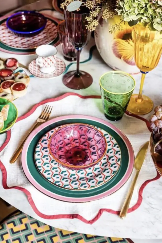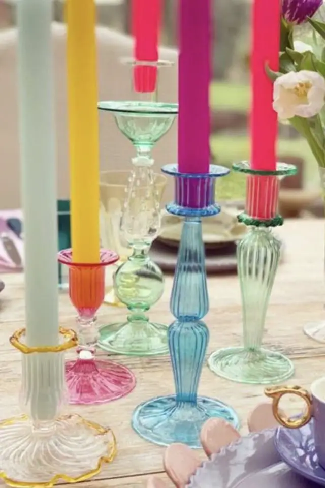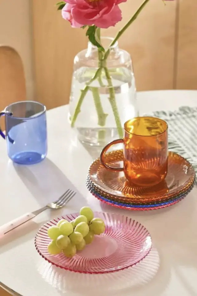 01 • Déco de table & verre coloré pour un repas qui invite à la bonne humeur