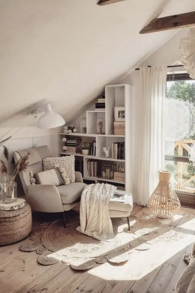 - Ambiance cottage cosy pour l’espace bibliothèque