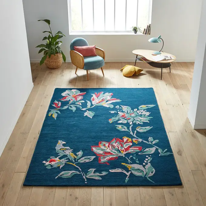 Le décor floral du tapis a été longtemps laissé de côté. On lui avait conféré un côté trop kitch et désuet. Mais il revient doucement dans la déco. On le voit dans le papier peint par exemple. On peut aussi le retrouver sur les rideaux pour les plus audacieux. D'ailleurs, fait que je pense à vous préparer un article sur le mobilier à fleurs dont je suis en amour depuis quelques jours. En attendant, pourquoi ne pas craquer sur un tapis à fleurs pour symboliser le renouveau perpétuel de la nature dans votre salon?!