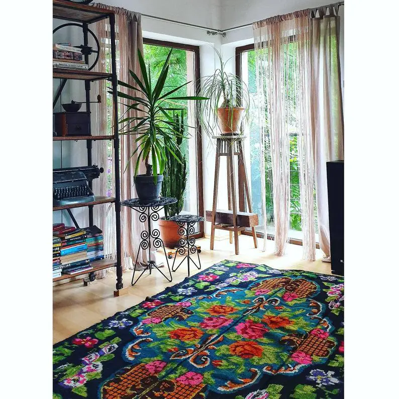 J'ai commencé avec les tapis berbères mais ce ne sont pas les seuls tapis qui invitent au voyage. Il y a aussi les tapis moldaves, avec des motifs floraux très spécifiques et reconnaissables. La couleur aussi est spécifique sur ce type de tapis. Elle est flamboyante et profonde. Idéal pour réchauffer un intérieur trop impersonnel et une ambiance un peu froide.