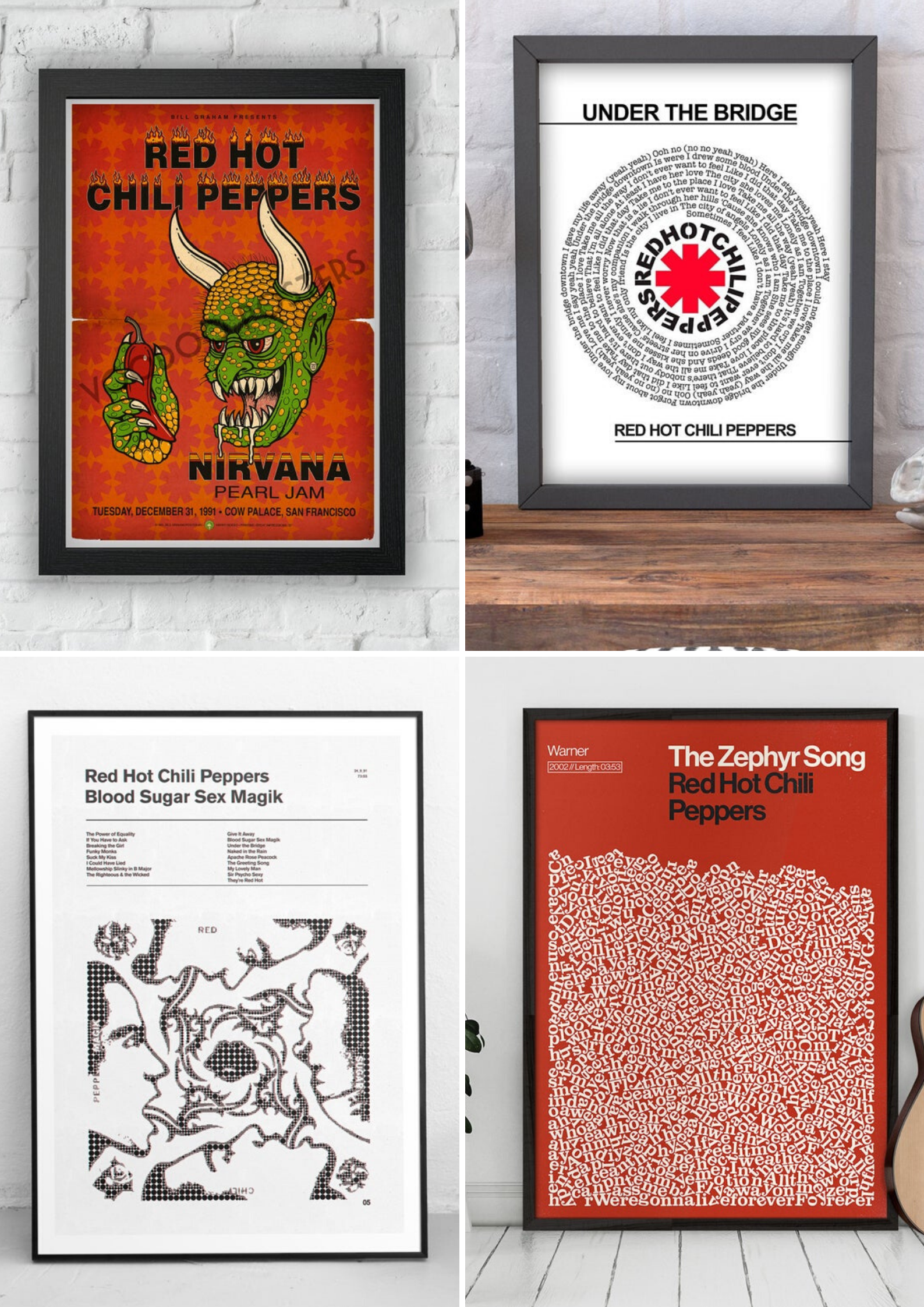 Pour écrire cet article, je suis d'ailleurs en train d'écouter l'un de leur best of sur Youtube... En ce moment je suis dans une période Red Hot Chili Peppers. Ca m'arrive... Bref, en faisant ma recherche, je me suis bien marrée en voyant les traductions automatiques. Bah oui Red Hot Chili Peppers, ça donne rouge poivron chaud piment ou des trucs dans le genre. En anglais, ça ne choque pas. En français, c'est bien moins glamour d'un coup. je suis aussi tombée sur la traduction "Me prendre à la place que j'aime" et là, on esprit pas très féminin voit tout de suite une allusion au cul, alors que la chanson ne dit pas tout à fait ça. Là aussi, j'ai fait un sérieux tri entre le moche et ce qui pourrait vraiment servir en matière de déco. Mais je suis contente de voir qu'il y a quand même un peu plus de choix. Il y a bien entendu les pochettes des albums à toutes les sauces, mais pas que!