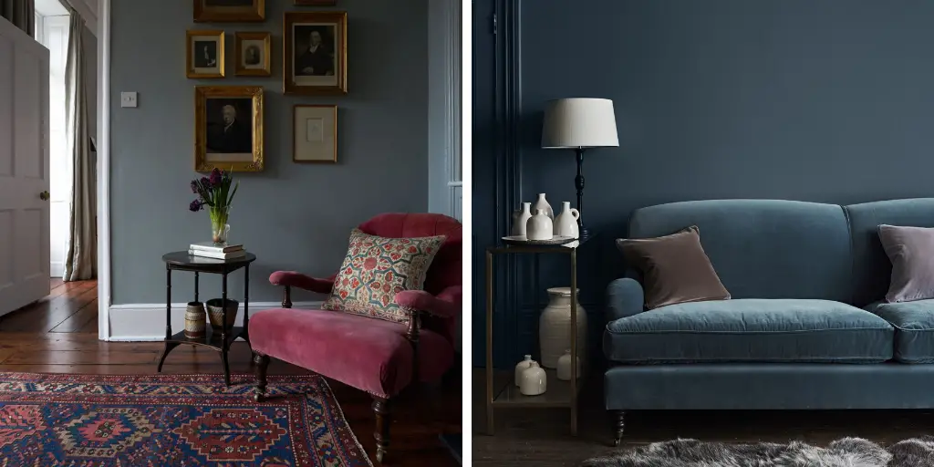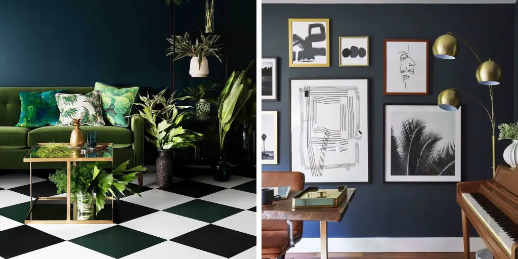 Prenons l'exemple d'une décoration de salon avec tous les murs peints dans une couleur foncée. Souvent ce type de nuances est choisi pour son caractère intimiste. Mais le gros risque c'est de transformer votre pièce en placard pas hyper accueillant. La lumière aura un grand rôle à jouer dans votre décoration. Les meubles et le revêtement de sol tout autant. On va chercher à créer des touches d'éclat avec le mobilier, des points plus lumineux.