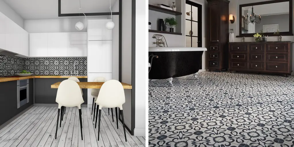 Pour terminer cet article consacré aux couleurs sombres et leur associations aux matériaux, on s'intéresse aux carreaux de ciment qu'on trouve au sol ou aux murs. La caractéristique vintage du carreau de ciment colle parfaitement avec l'aspect solennel de la couleur sombre. On crée une histoire, un décor ancré dans le temps en associant ces deux éléments. Par ailleurs, les motifs des carreaux de ciment apporteront un certain dynamisme à votre intérieur.