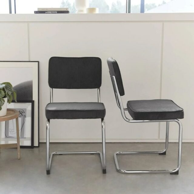 Lot de 2 chaises cantilever, velours côtelé & chrome - La Redoute