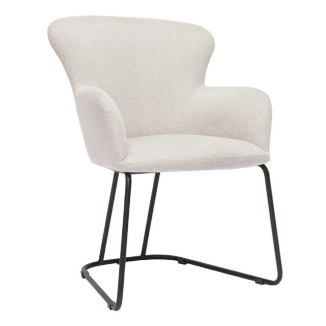 Chaise en tissu effet velours texturé beige et métal noir - Miliboo