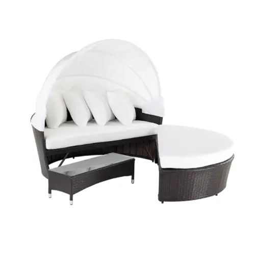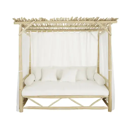 Le Daybed si on le traduit littéralement signifie "lit de jour". C'est un mélange de méridienne sur laquelle on peut s'allonger mais avec une idée de confort qui est plus présente encore. Le Daybed va être plus large, parfois avec des montants. On peut y trouver aussi des coussins pour que ce soit plus confortable. Le Daybed invite à la nonchalance et au repos. Ce n'est pas un élément spécifique au jardin; Pour l'extérieur, il faut juste veiller à ce qu'il ne craigne pas l'humidité et que les textiles aient une protection UV. Un peu comme pour un bain de soleil!