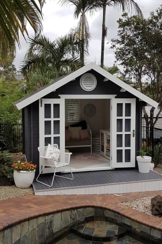 Le She Shed peut être aussi considéré comme une pièce en plus de la maison. Si vous vous sentez à l'étroit pour X ou Y raisons, la cabane dans le jardin peut se transformer en 2ème salon ou encore en salle de jeux pour les enfants. Plutôt que de construire une extension accolée à la maison, on utilise le cabanon de jardin. Notez tout de même que l'installation d'un chalet de jardin en France ne se fait pas à l'arrache. S'il dépasse 5m2, il est nécessaire de demander l'autorisation à votre mairie (une déclaration préalable de travaux). Je vous en parle plus longuement ici.