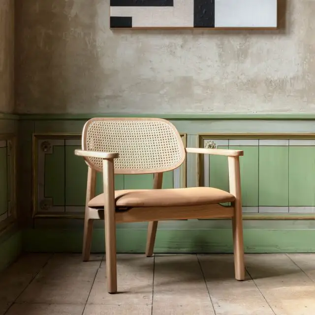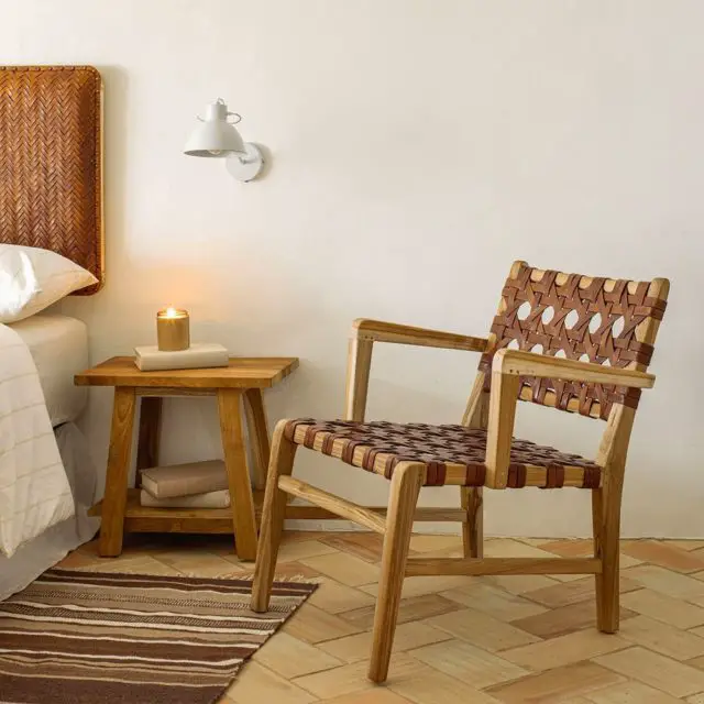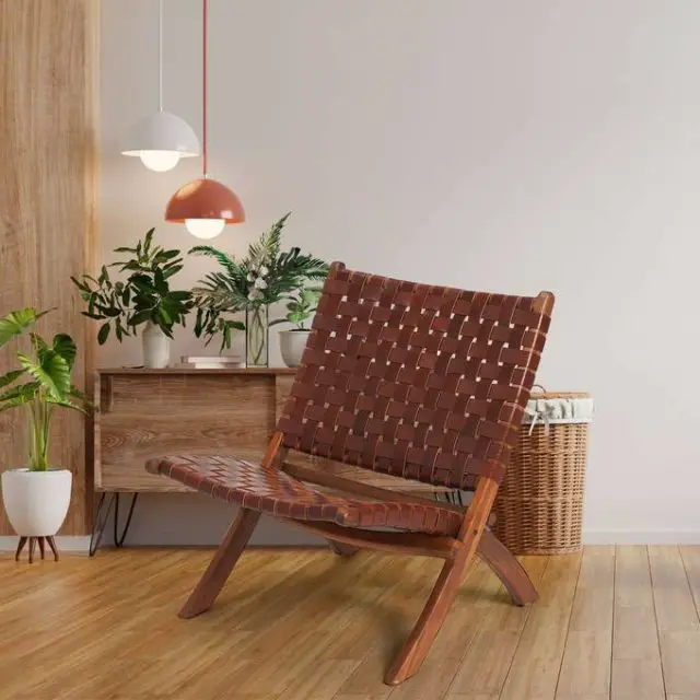 - Cuir tissé à l'image du cannage pour un fauteuil design