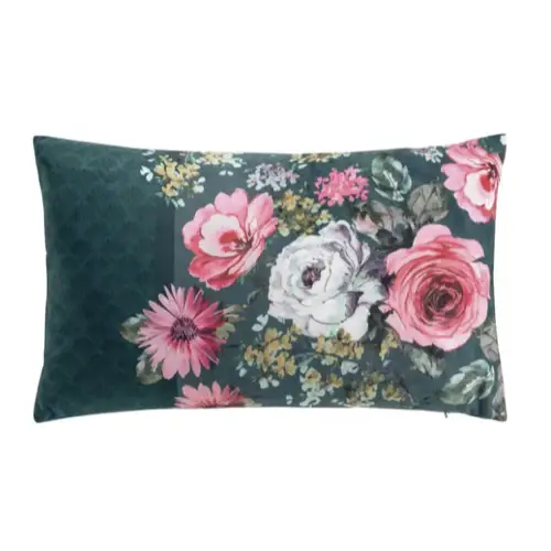 30 • Housse de coussin imprimé floral vert, rose et bleu marine - Maisons du Monde