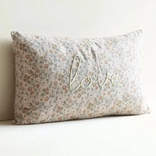 - Enfin, dans ma sélection, vous verrez qu'il y a plusieurs modèles de coussins avec de la broderie. C'est un petit détail que je trouve délicat, comme une jeune pousse qui sort de terre.
