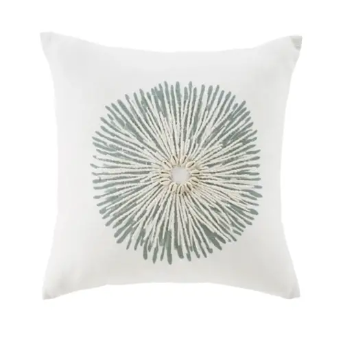 06 • Coussin en coton écru avec broderies vertes - Maisons du Monde