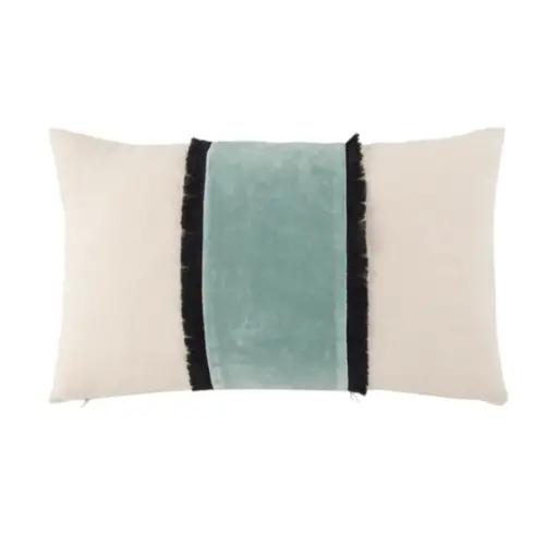 22 • Housse de coussin en coton et velours de coton écru et bleu - Maisons du Monde
