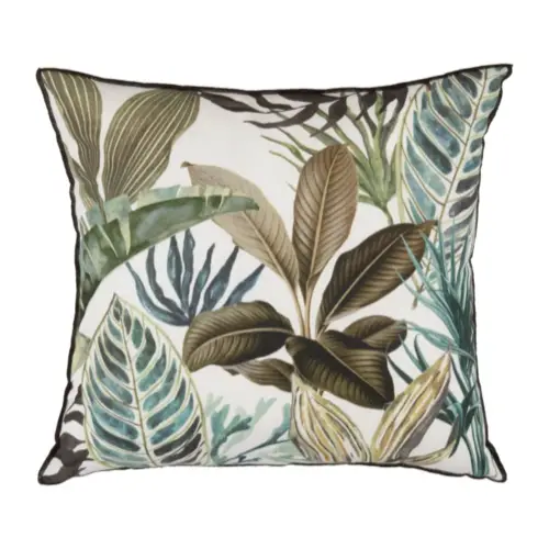 34 • Housse de coussin en coton motif tropical vert et écru - Maisons du Monde