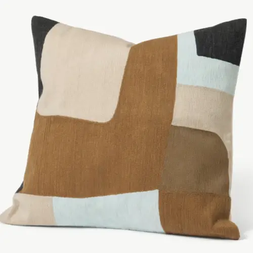 18 • Housse de coussin en coton motifs graphiques marron et écrus - Maisons du Monde