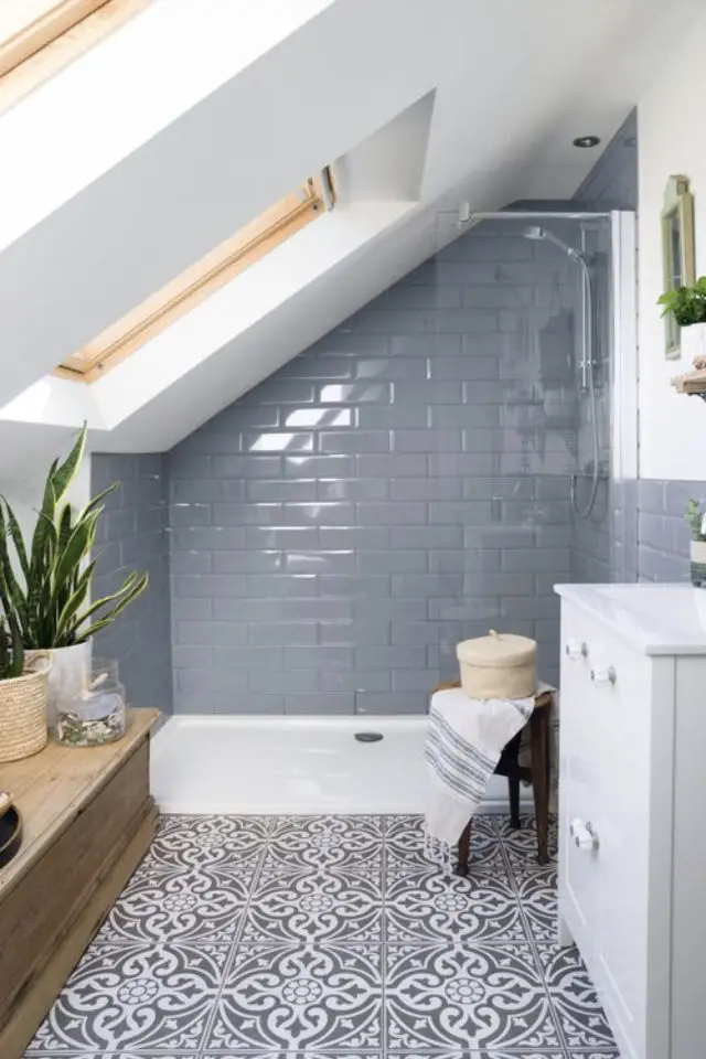 J'ai l'impression que cela fait longtemps que je ne vous ai pas parlé des combles et de leurs aménagements. J'ai déjà traité le sujet en long, en large et en travers sur le blog. D'ailleurs, tous les articles dédiés à l'aménagement des combles sont ici. Mais je n'ai jamais réellement consacré un article autour de la salle de bain dans les combles. En général, la chambre ou les pièces de vie sont favorisées quand il s'agit d'aménager l'espace sous le toit. Néanmoins, il est tout à fait possible d'y installer aussi une cuisine ou une salle de bain. Cela demande "juste" plus de travaux notamment pour les arrivées et les évacuations d'eau. Souvent sous la toiture, la salle de bain est un espace plus long que large mais cette étroitesse n'est pas un frein au confort. On peut très bien installer une douche ou une baignoire. Il faut juste bien prévoir son coup pour avoir suffisamment d'espace et ne pas se cogner dans la pente du toit. Niveau déco, la chose primordiale à mes yeux est de veiller à ce qu'il y ait suffisamment de lumière, quitte à ajouter une fenêtre de toit pour que ce soit plus agréable. Pour les revêtements, pas de contraintes spécifiques... Même dans une petite salle de bain, il est possible de créer un endroit qui vous ressemble!