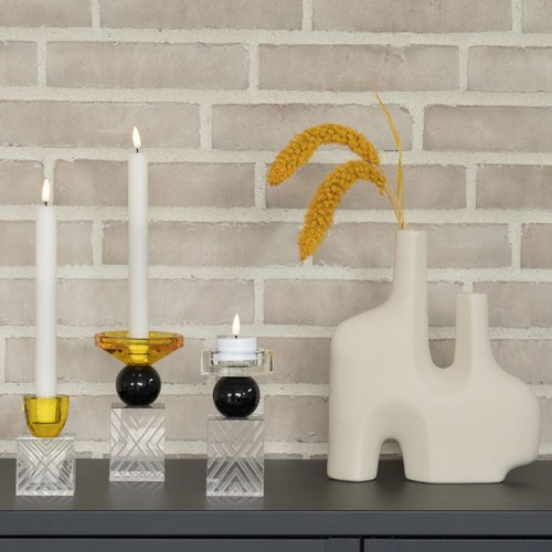 Troisième famille d'objets qui vous aidera à créer un joli décor sur le rebord intérieur de la fenêtre: les bougies. Je trouve que c'est un objet assez "logique", "attendu". La fenêtre laisse passer la lumière, la bougie crée de la lumière. Vous voyez le rapport? En journée, la bougie crée du volume, décore. Quand la nuit tombe, elle éclaire. Et la bougie n'est généralement pas seule. Il y a toute une panoplie de jolis objets qui vont la mettre en valeur et qui décoreront eux aussi: photophore, lanterne, chandelier, candélabre, bougeoir... Même si la bougie est souvent associée à l'hiver voire aux fêtes de fin d'année, elle trouve sa place tout au long de l'année au bord de votre fenêtre, sur un guéridon ou encore le dessus du buffet.