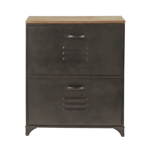 deco entree style eclectique Meuble à chaussures 2 tiroirs en métal et sapin
